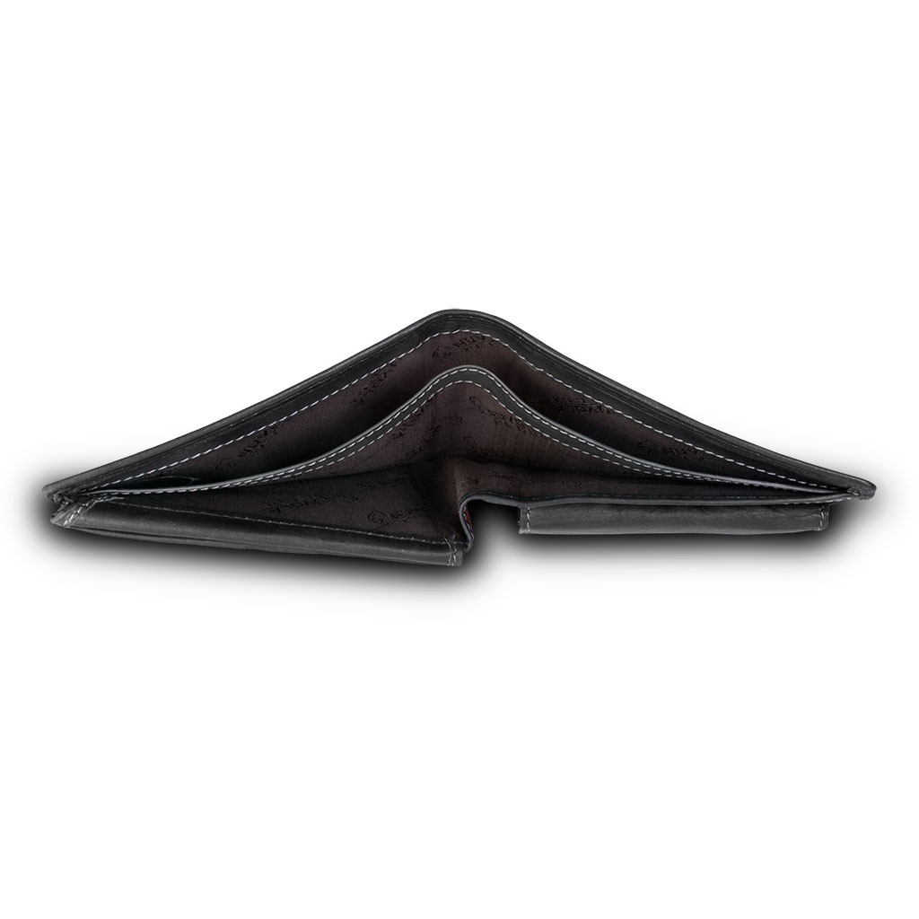 Two-color man',s billfold wallet made in soft genuine calfskin leather with antique effect. Many credit card holders, coin pocket divided in two compartments and inner flap with vertical opening. Leather pieces in brown color break the homogeneity of main color.