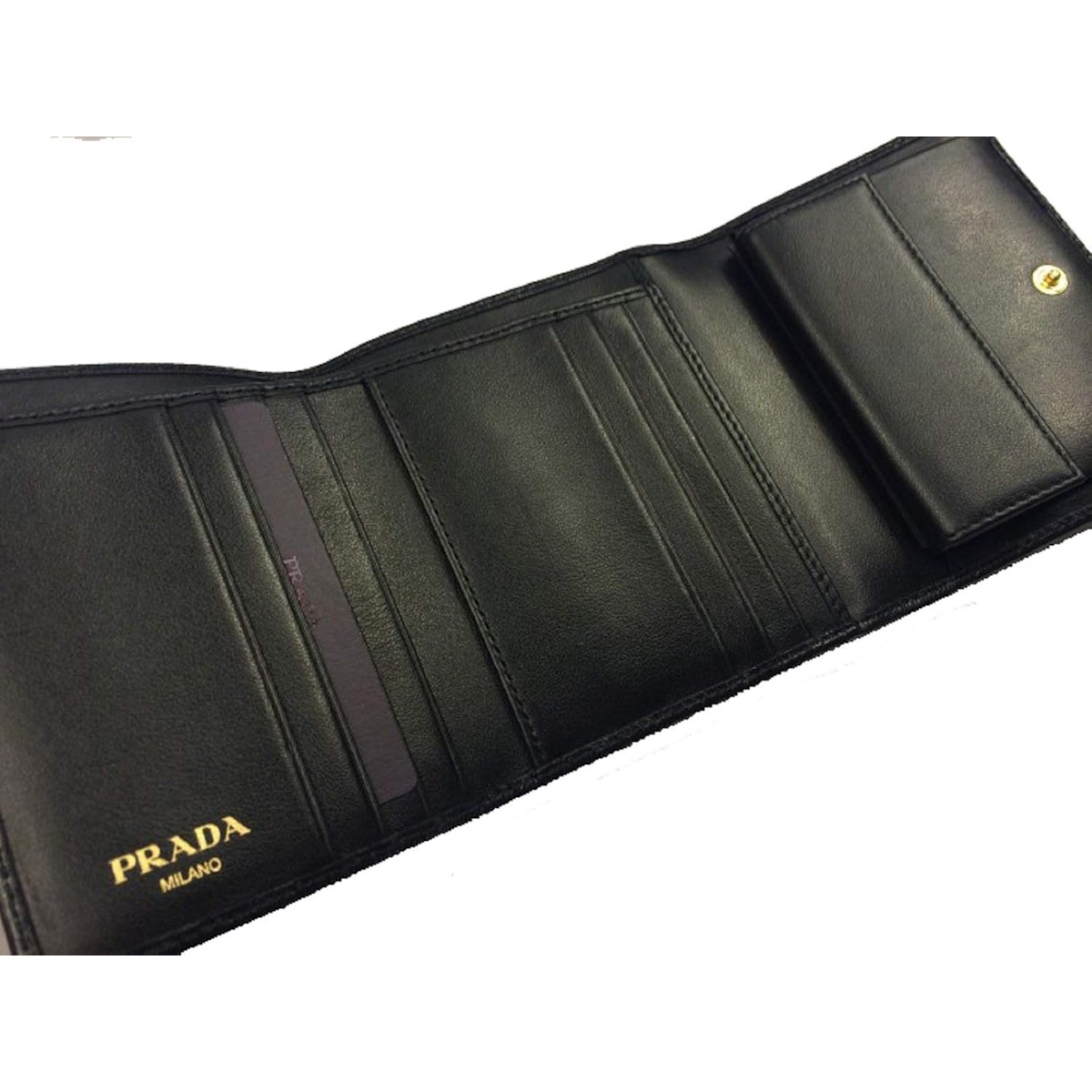 Prada black leather trifold wallet. Model 1MH176. Black Vitello Move leather